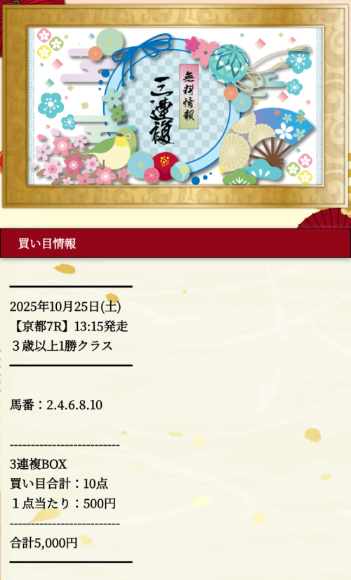 ↑から無料メルマガ登録してから無料買い目を確認してください!