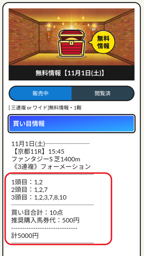 ↑レース前夜に買い目を確認して無料情報を頼ってください(^_-)