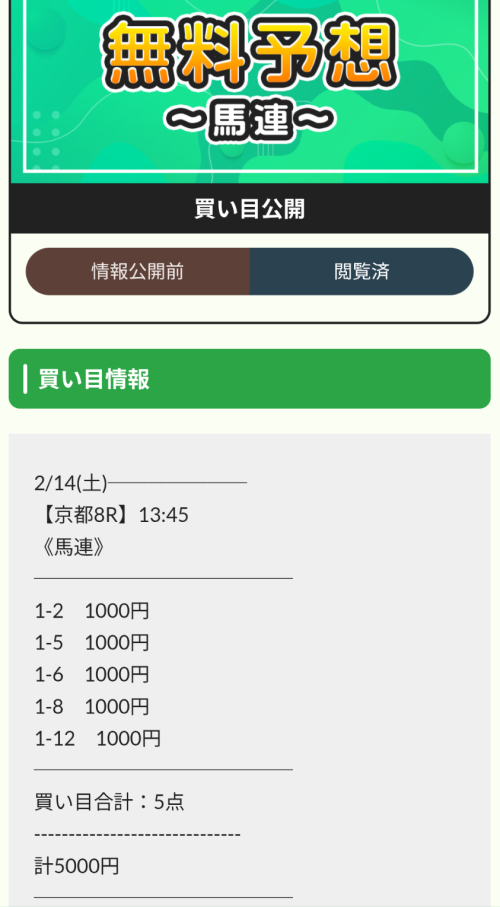 馬連・無料情報です(*^^*)